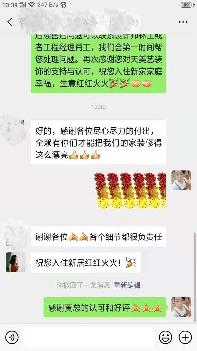 感謝各位盡心盡力的付出,全賴有你們才能把我們的家裝修得這么漂亮,謝謝各位,各個細節(jié)都很負責任。