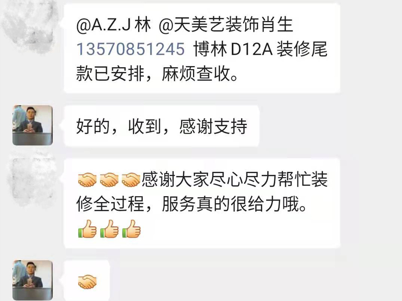 感謝大家盡心盡力幫忙裝修全過程,服務(wù)真的很給力哦。